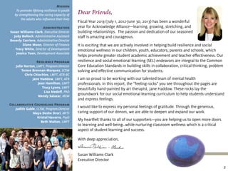 - For the coming year, the organization will continue working to promote resilience and well-being for students, educators, and communities.
