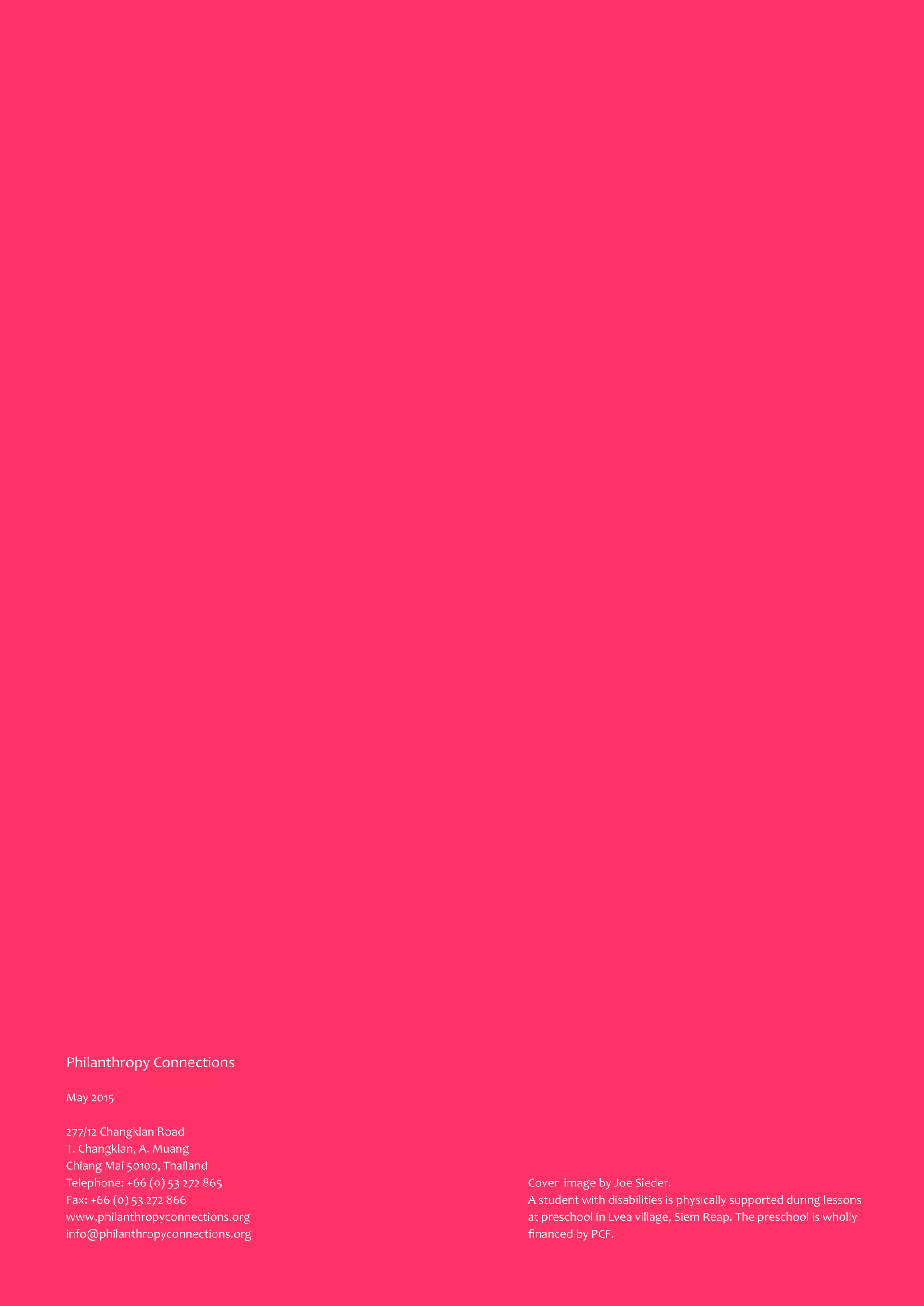 - Philanthropy Connections is a charitable organization that supports local organizations in Thailand, Cambodia, and Burma to empower disadvantaged communities.