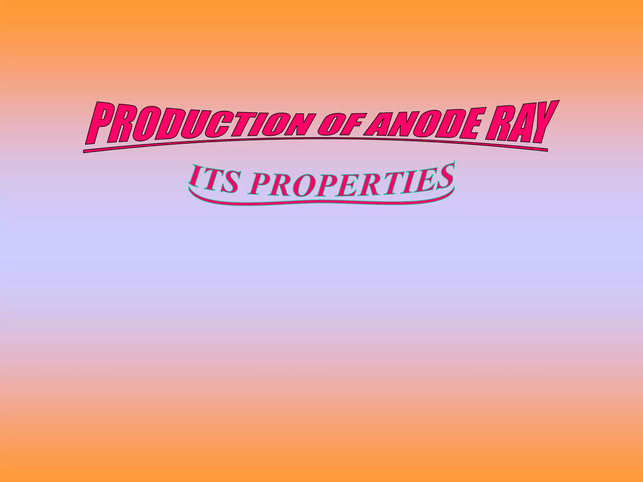 The document discusses the discovery and properties of anode rays (protons). It explains that goldstein showed the existence of protons in atoms and that anode rays are produced using a discharge tube with a perforated cathode. The anode rays travel in straight lines, can produce mechanical effects by rotating a paddle wheel, and are positively charged as they are deflected towards the negative plate in an electric field.