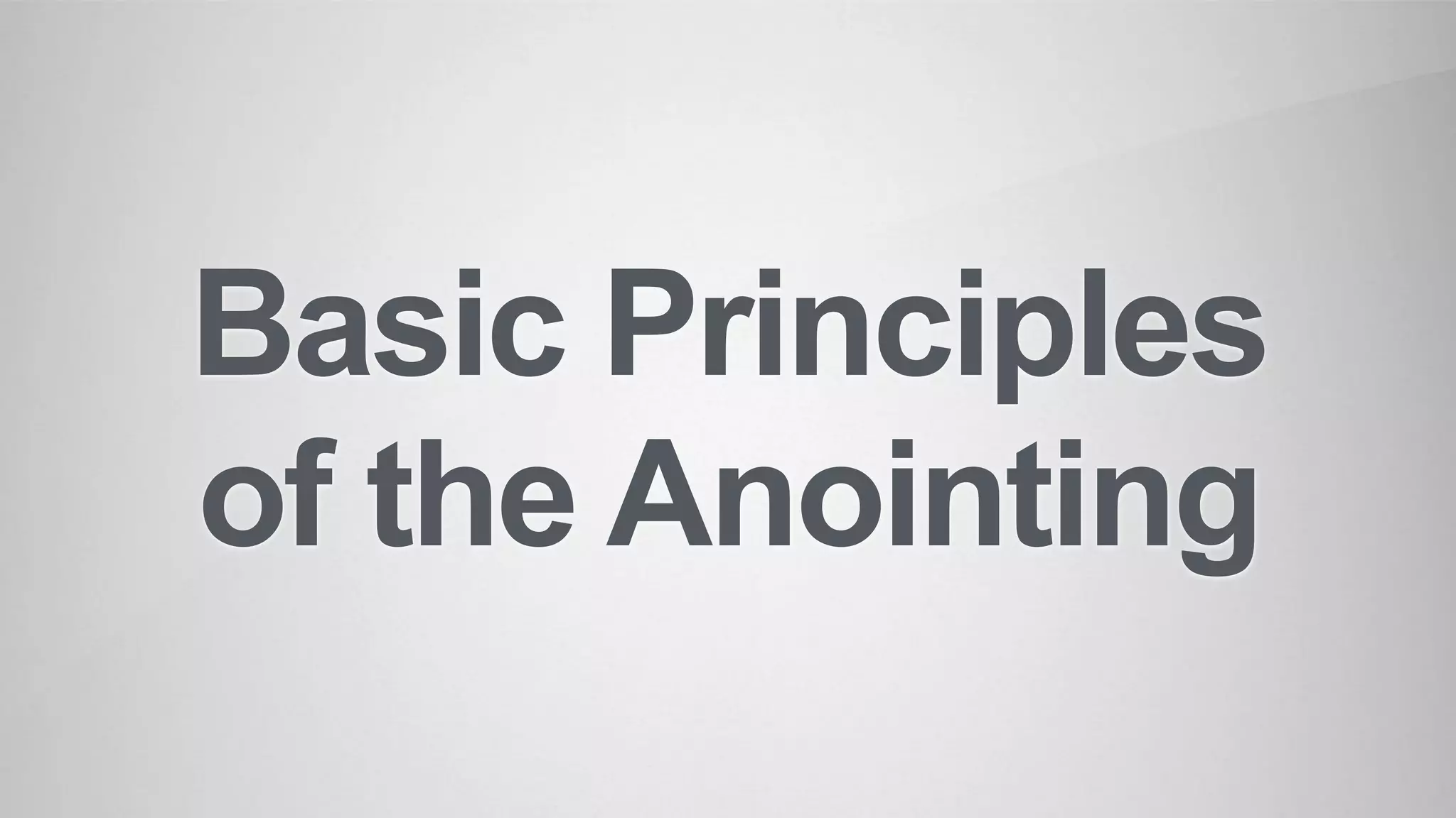 The document discusses the principles of anointing according to the Bible. It provides several key points about anointing: (1) Anointing demands holiness of heart and righteousness of life, devotion to God's word, and absolute obedience to the Holy Spirit. (2) In the New Testament, the most common Greek word for anointing is "Christ," referring to Jesus as the anointed one. (3) All Christians are anointed with the Holy Spirit, and this anointing helps believers not be misled by false prophets or teachings about Christ.
