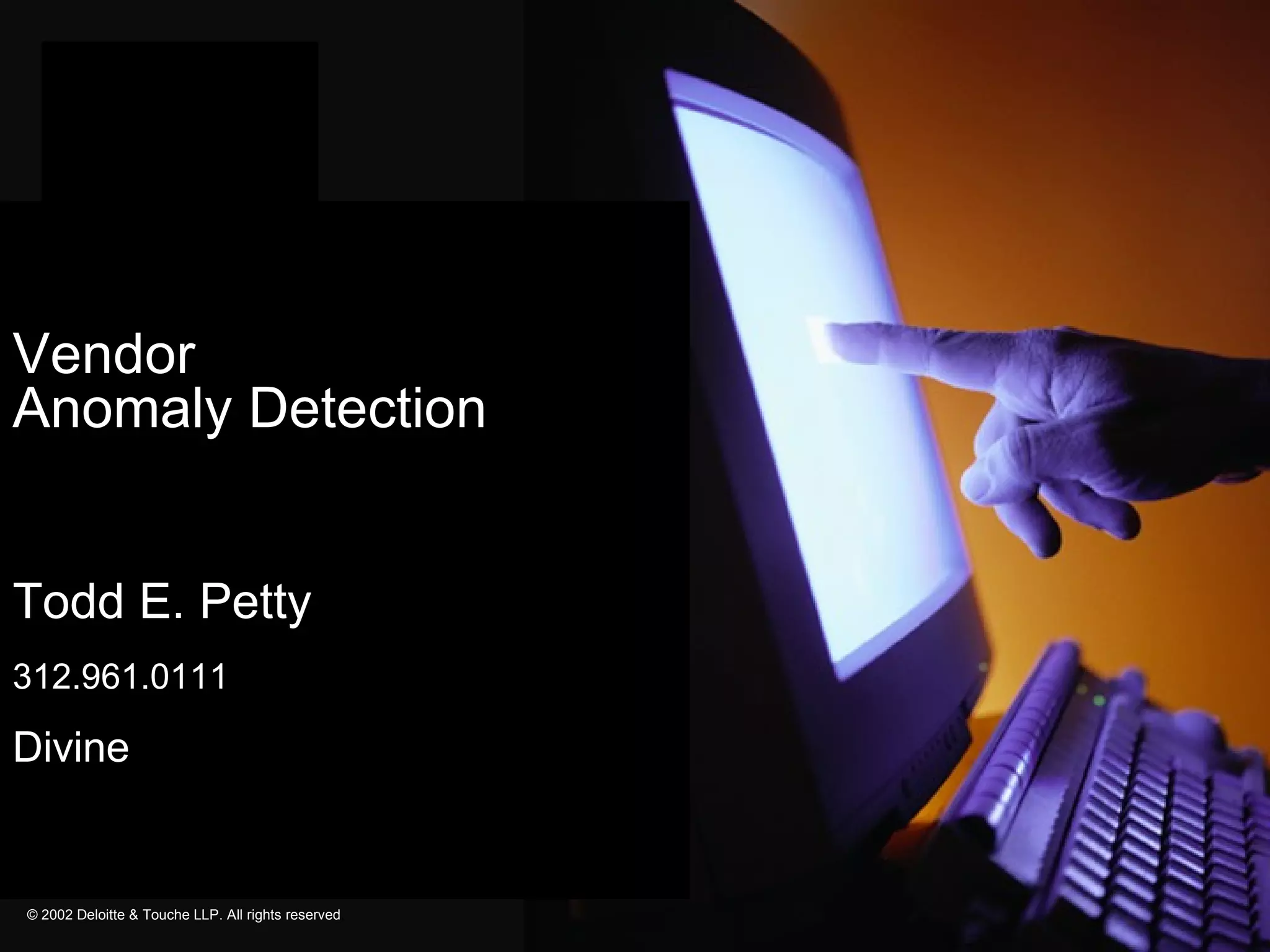 The document discusses vendor anomaly detection and fraud prevention. It notes that complex business structures make fraud difficult to detect, with the median loss from accounts payable fraud being $250,000. Anomaly detection can identify fraud like ghost vendors, duplicate payments, and fraudulent invoices by normalizing and analyzing a company's internal vendor and payment data and comparing it to external sources to find anomalies that may indicate fraud. This approach can uncover fraud before costs become too large and help identify management control issues.