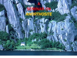 The document discusses anorthosite, an intrusive igneous rock composed of 90-100% plagioclase feldspar. It describes the mineralogy, texture, and classification of anorthosite. Proteroic anorthosite formed during the Proterozoic era while Archean anorthosite formed during the Archean and are characterized by calcic plagioclase. Anorthosite is also found on the moon and classified as lunar anorthosite. Some anorthosite deposits are mined for titanium, iron, gemstones, and aluminum.