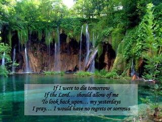 The document is a poem about cherishing each day with loved ones and not taking them for granted. It reflects on how the speaker would have no regrets if they were to die tomorrow because they showed their loved ones they cared through kind words, sweet gestures, precious moments, and saying "I love you" before bed each night.