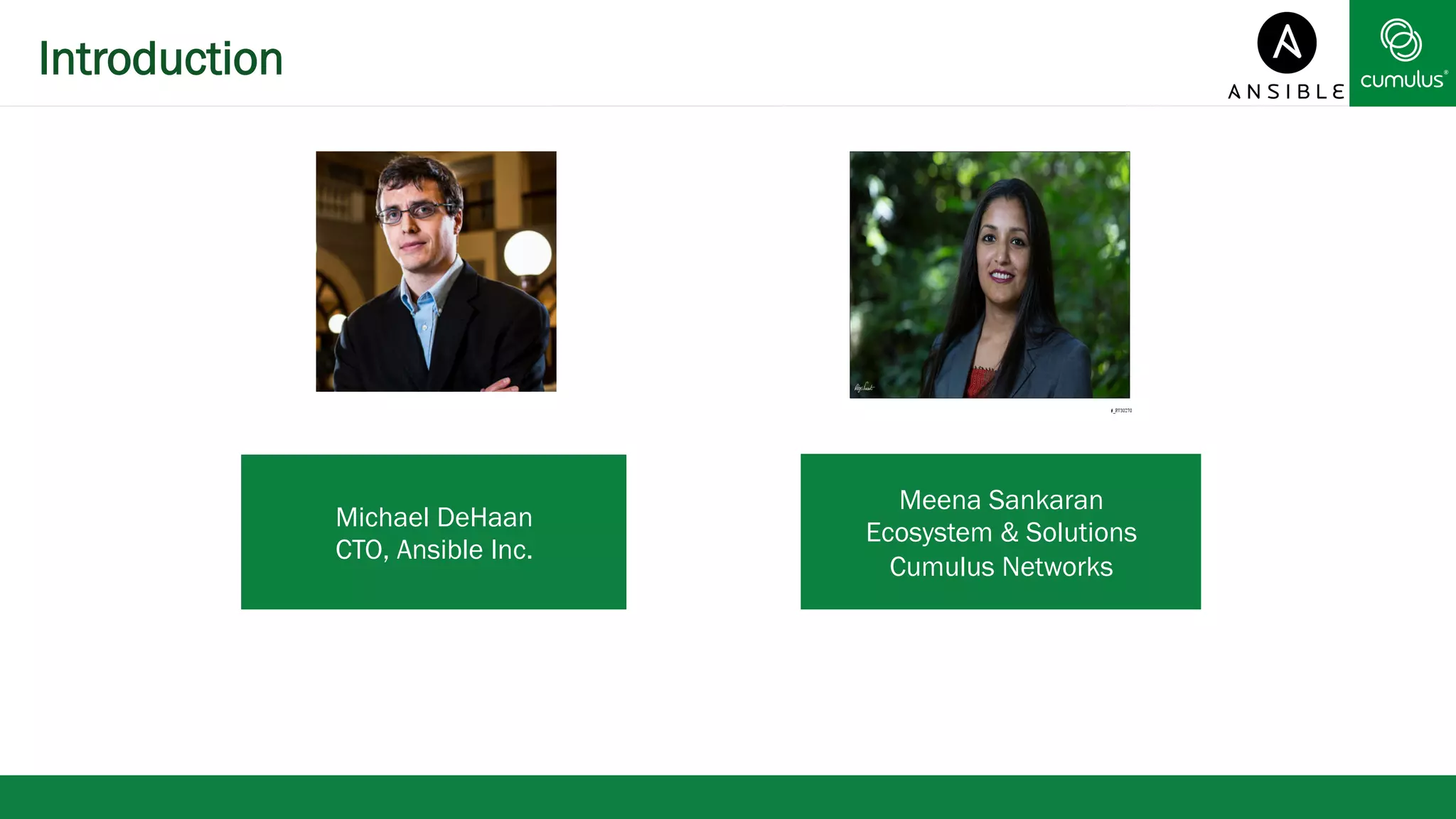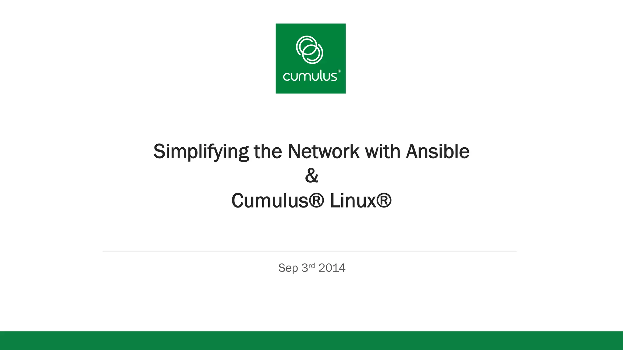 This document discusses how Ansible, an open-source automation tool, can be used with Cumulus Linux to simplify network configuration and management. Ansible allows for automated configuration of network devices running Cumulus Linux through templates and playbooks. Together, Ansible and Cumulus Linux provide benefits like unified automation of both compute and network infrastructure, rapid provisioning, and easy configuration management. Examples of network automation scenarios using Ansible and Cumulus Linux are also provided.