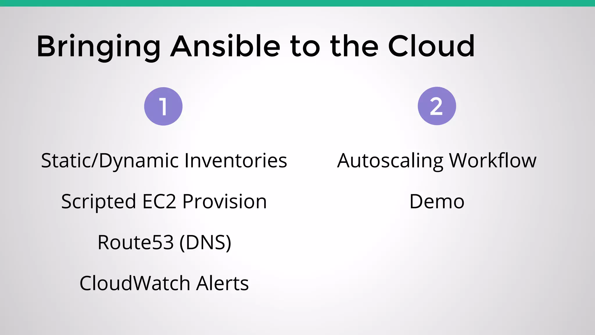 The document discusses the integration of Ansible with AWS for provisioning and managing EC2 instances, focusing on both static and dynamic inventories. It details the use of Ansible playbooks for automated EC2 provisioning, DNS management through Route53, and setting up monitoring and autoscaling workflows. Additionally, it covers example configurations and tasks for creating alerts based on instance metrics and emphasizes practical implementation through provided code examples.