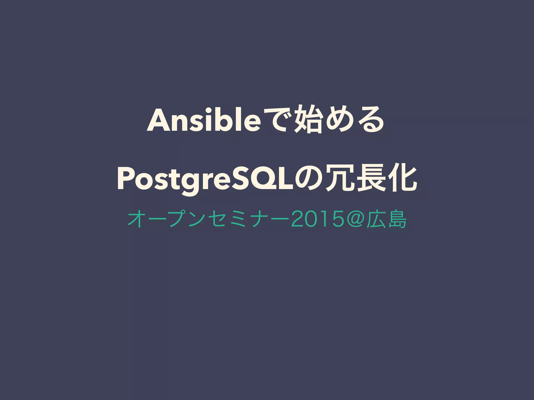 PostgreSQLの冗長化 大丈夫、そうAnsibleならね!