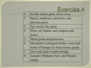2. They exchanged European textiles, wool, and wines for Asian luxury goods.
