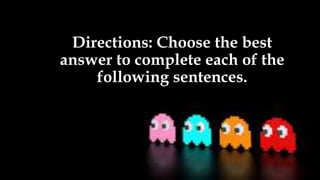 The document provides directions to choose the best answer to complete sentences. It includes questions about grammar, vocabulary, and meanings of words in context. The sentences are about walking quickly in the rain, where someone lives, how a medicine works to inhibit infection spread, and what "ostracize" means in the context of welcoming or excluding others.