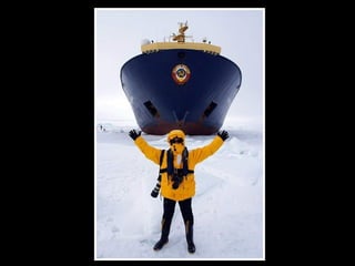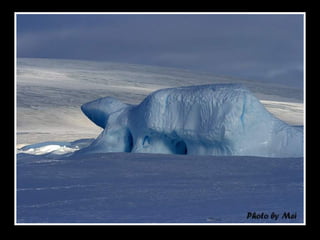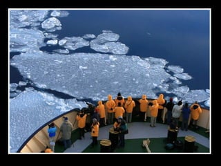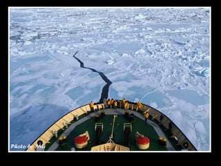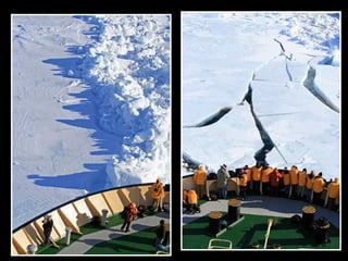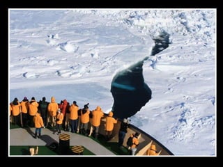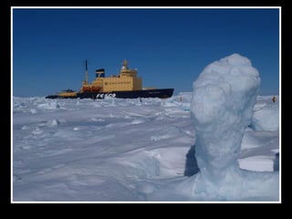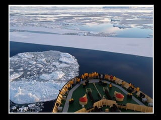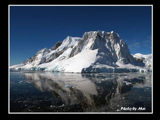 文档描述了南极洲雪山岛的壮丽景色,强调了冰层厚度导致驱冰船无法前进的挑战。尽管面临困难,穿越冰山时却能欣赏到迷人的诺米尔海峡美景。