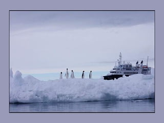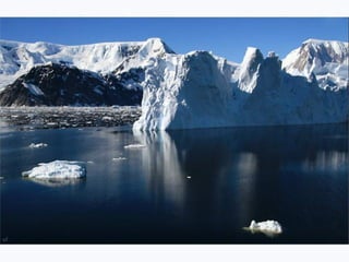 1) Antarctica is located at the South Pole and has extremely cold temperatures reaching as low as -70° Celsius with wind speeds up to 300 km/h.