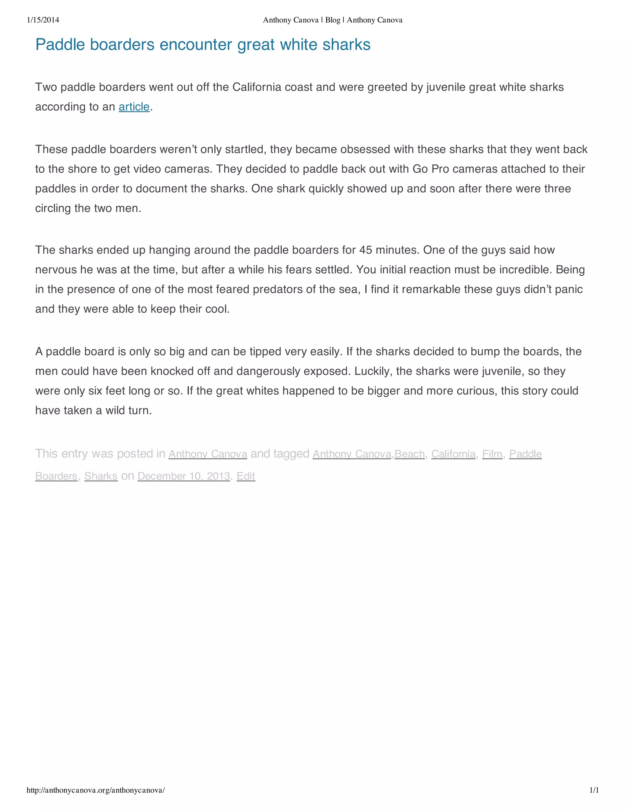 Anthony Canova discusses a group of paddle boards who took video footage of great white sharks.
