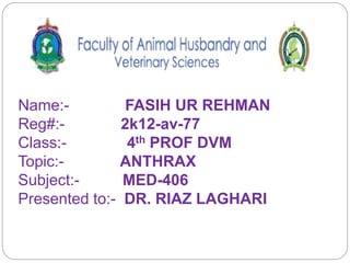 The document provides a comprehensive overview of anthrax, a zoonotic disease caused by the bacterium Bacillus anthracis. It discusses its transmission, clinical findings, diagnosis, treatment options, and the importance of vaccination, highlighting the fatal nature of the disease, particularly in livestock. The effects of anthrax can be rapid and deadly, with a high mortality rate, underscoring the need for preventive measures through vaccination and careful management of infected animals.