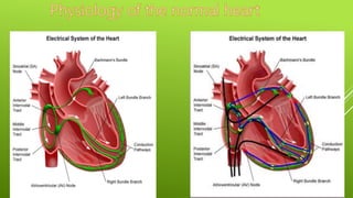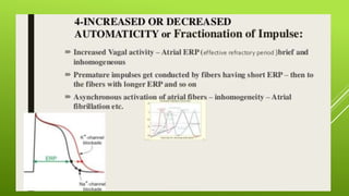 This document discusses antiarrhythmic agents and their mechanisms and classifications. It begins by describing the normal cardiac conduction pathway and different types of arrhythmias including their causes. Antiarrhythmic drugs are classified into four classes based on their effects on the cardiac action potential and ion channels. Class I drugs block fast sodium channels, class II are beta blockers, class III block potassium channels, and class IV block calcium channels. Examples from each class like quinidine, propranolol, amiodarone, and verapamil are described in more detail regarding their mechanisms and uses.