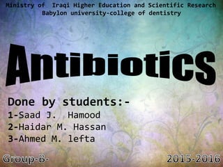 This document provides information on prescribing antibiotics for orofacial bacterial infections. It discusses appropriate antibiotic choices based on the infection type, pathogen involved, and patient factors like immunity status. Narrow-spectrum penicillins are generally first-line. It also covers prophylactic antibiotic guidelines for invasive dental procedures in high-risk cardiac and joint implant patients.