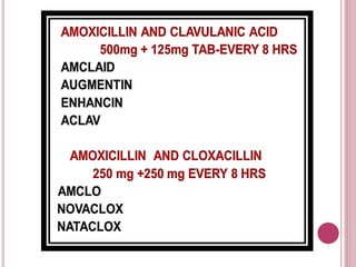 This document provides an overview of antibiotics, including their history, classification, mechanisms of action, and principles of administration. It discusses how antibiotics are classified based on their targets in bacteria and spectra of activity. Common antibiotics are also reviewed, along with how bacteria can develop resistance through modifications to antibiotic targets, altered uptake or efflux, and antibiotic inactivation through enzymes. Proper dosing, timing, route, and monitoring of patients are important to achieve the desired therapeutic effects of antibiotics.