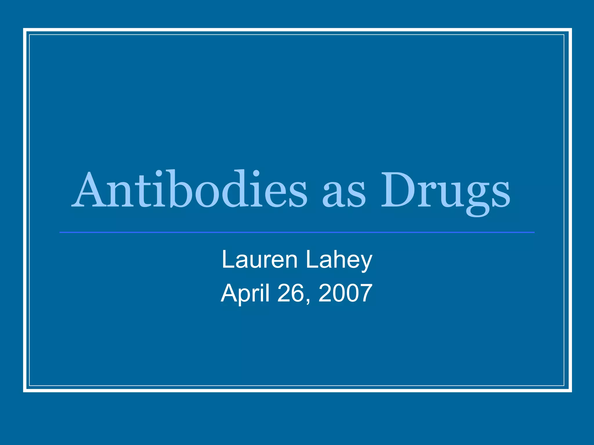 Antibodies have emerged as a promising class of therapeutic drugs due to their high specificity and ability to activate the immune system. Major breakthroughs included the development of serum therapy in the early 1900s and the discovery of monoclonal antibodies in the 1970s-80s. Today, over 20 antibody drugs are approved to treat various diseases including rheumatoid arthritis, with hundreds more in development. Rheumatoid arthritis is an autoimmune disease characterized by joint inflammation and damage, and antibody drugs that target cytokines like TNF-α have proven effective in slowing its progression.