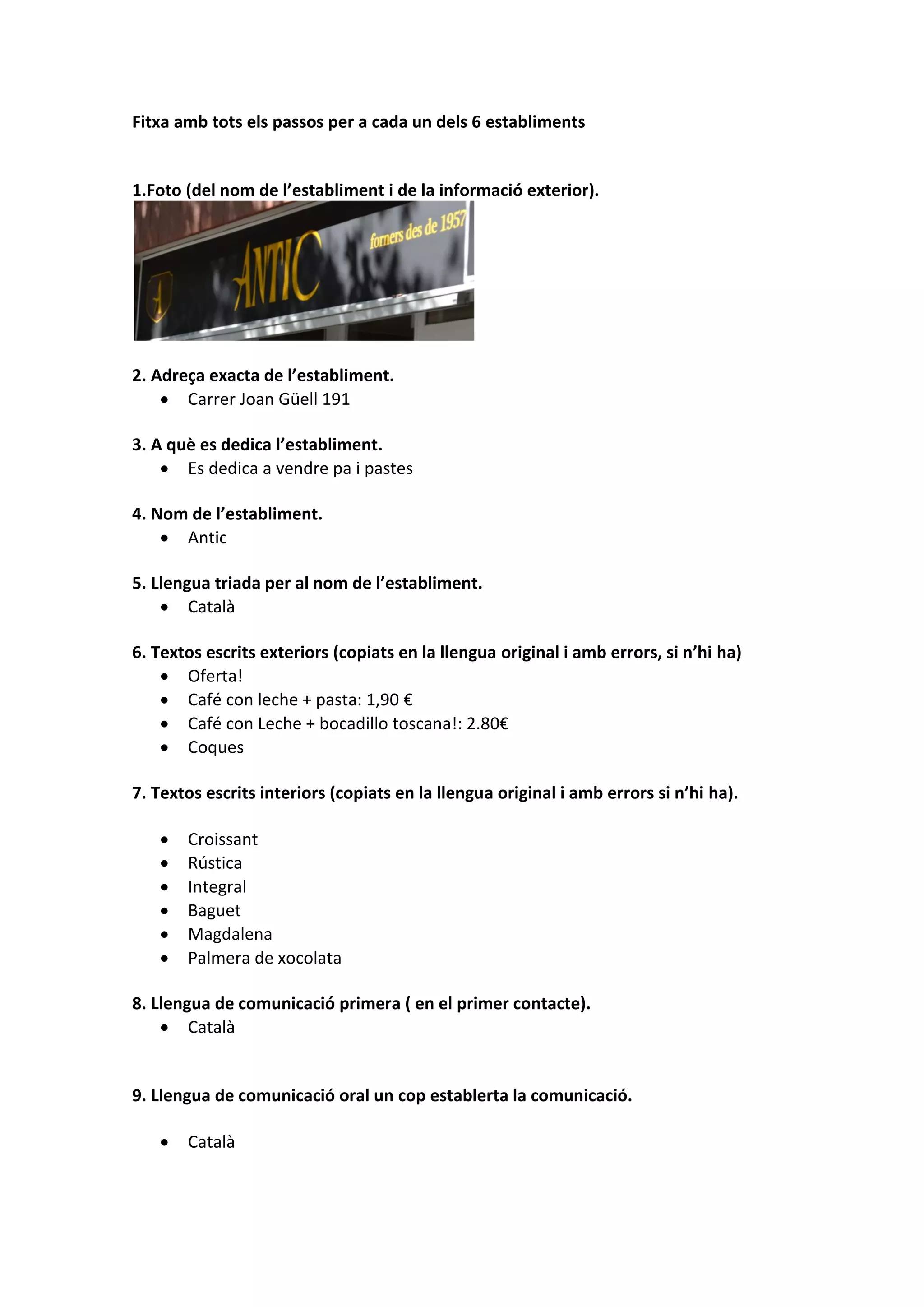 Fitxa amb totsels passos per a cada un dels 6 establiments