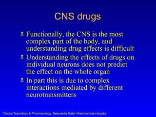Antipsychotic drugs work by blocking dopamine D2 receptors in the brain. Traditional antipsychotics like haloperidol mainly target D2 receptors, while atypical antipsychotics also block serotonin 5-HT2 receptors. Atypical antipsychotics have fewer extrapyramidal side effects but greater risks of metabolic side effects like weight gain and insulin resistance compared to traditional antipsychotics. Antipsychotic drugs differ in their receptor binding profiles and side effect risks.