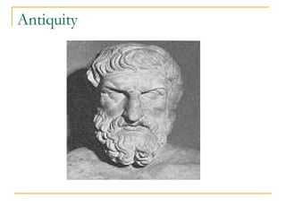 This document discusses antiquity and references Archestratus and Athenaeus. It focuses on various aspects of antiquity mentioned repeatedly throughout.