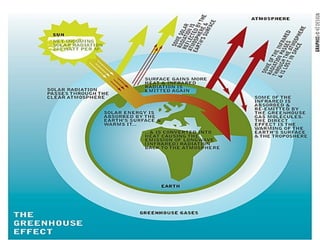 Air pollution is caused by both natural sources like dust storms and volcanic emissions, as well as human activities such as burning fossil fuels. The main primary pollutants from human activity are nitrogen oxides, sulfur oxides, carbon monoxide, particulate matter, and volatile organic compounds emitted from vehicles, power plants, industry, and other sources. These primary pollutants can then form secondary pollutants in the atmosphere through complex chemical reactions. Air pollution poses risks to human health through respiratory and cardiovascular issues and can also damage ecosystems and contribute to global warming through increased greenhouse gases.