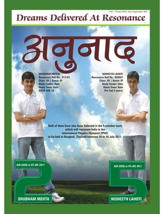 This document summarizes the achievements of 13 students from the Reso-Classroom programmes who ranked in the top 100 of IIT-JEE 2011.