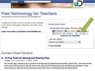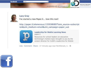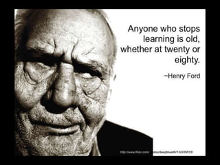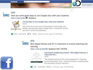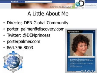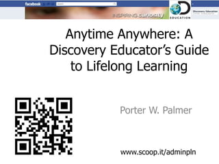 The document is a guide by Porter W. Palmer aimed at educators for lifelong learning through personal learning networks (PLNs). It emphasizes the importance of utilizing social media and online resources, such as blogs and Twitter, for professional growth and communication within educational communities. Additionally, it includes challenges to engage educators in actively participating in social networking for better collaboration and sharing of knowledge.