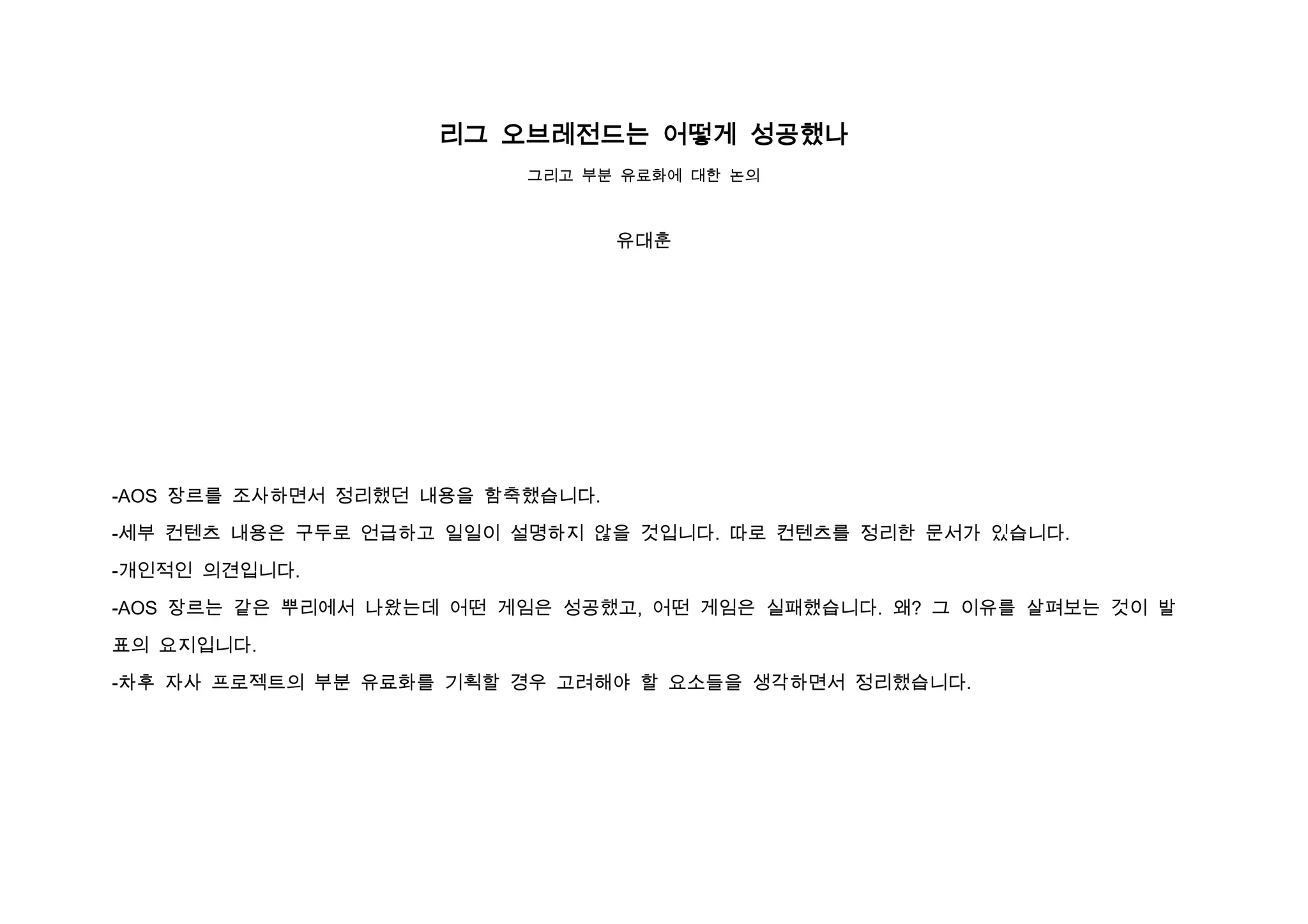 -AOS 장르는 같은 뿌리에서 나왔는데 어떤 게임은 성공했고, 어떤 게임은 실패했습니다. 왜? 그 이유를 살펴보는 것이 발