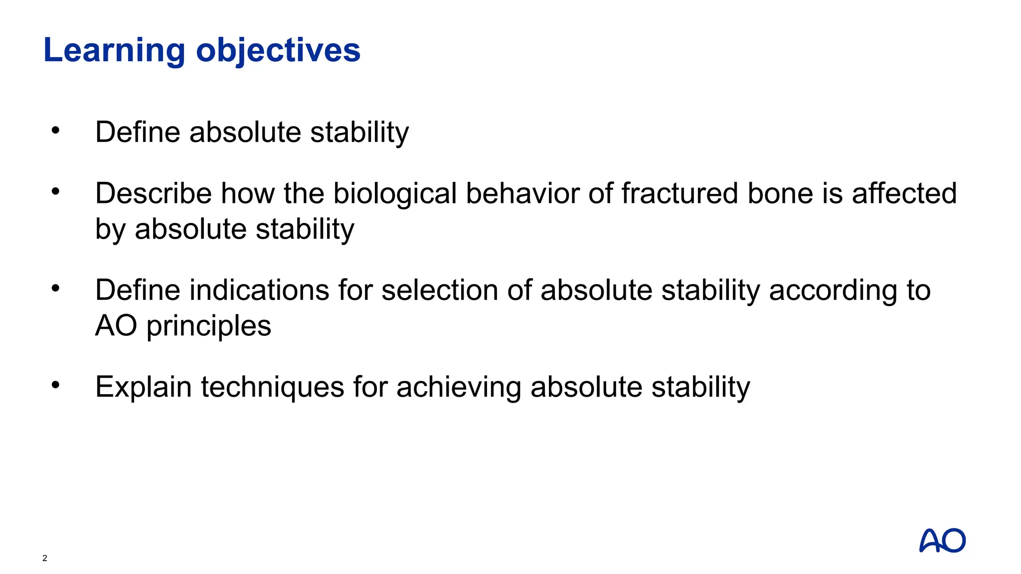 • Define indications for selection of absolute stability according to