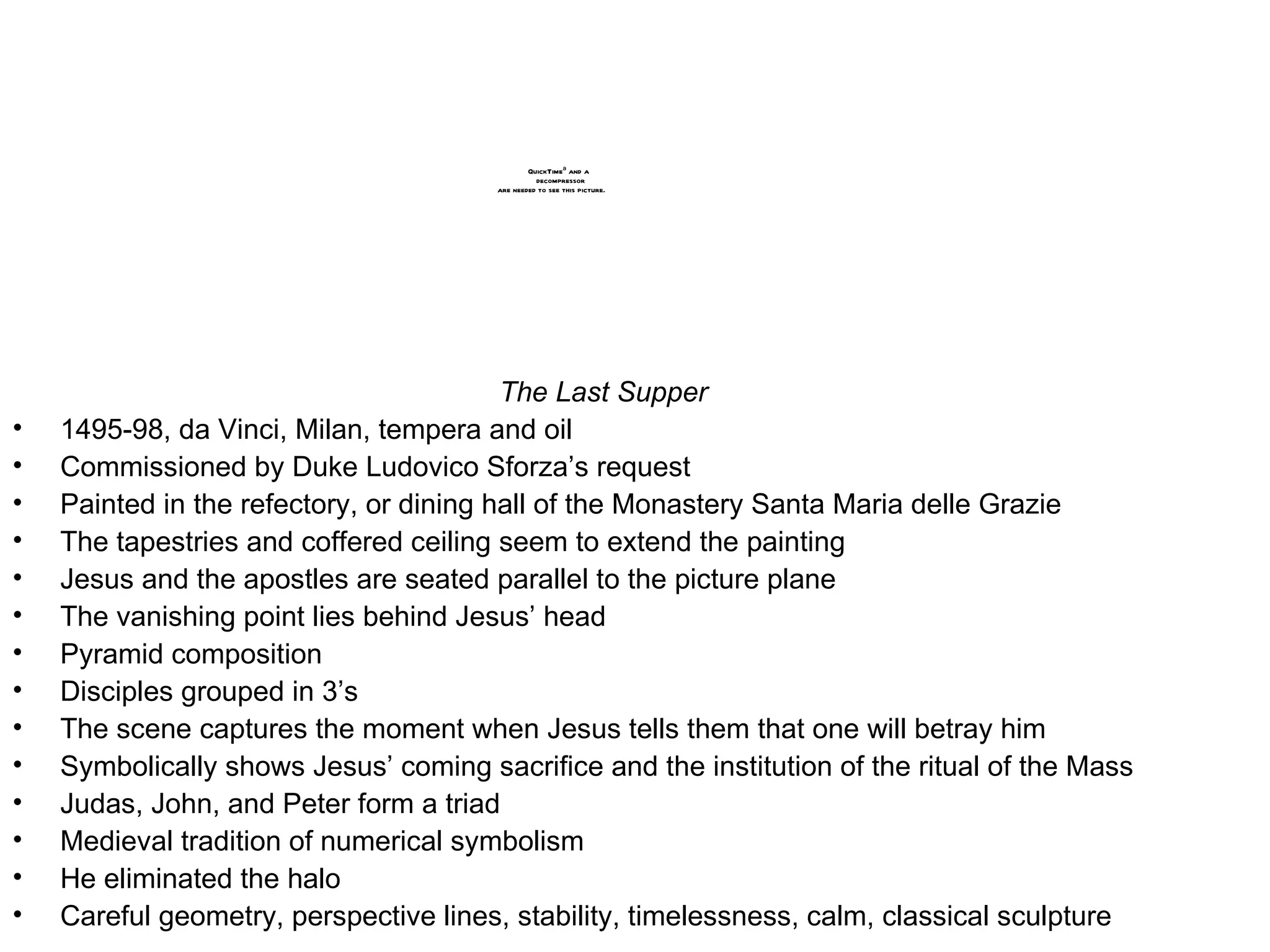 - Leonardo da Vinci's The Last Supper depicts Jesus announcing that one of the Apostles will betray him.