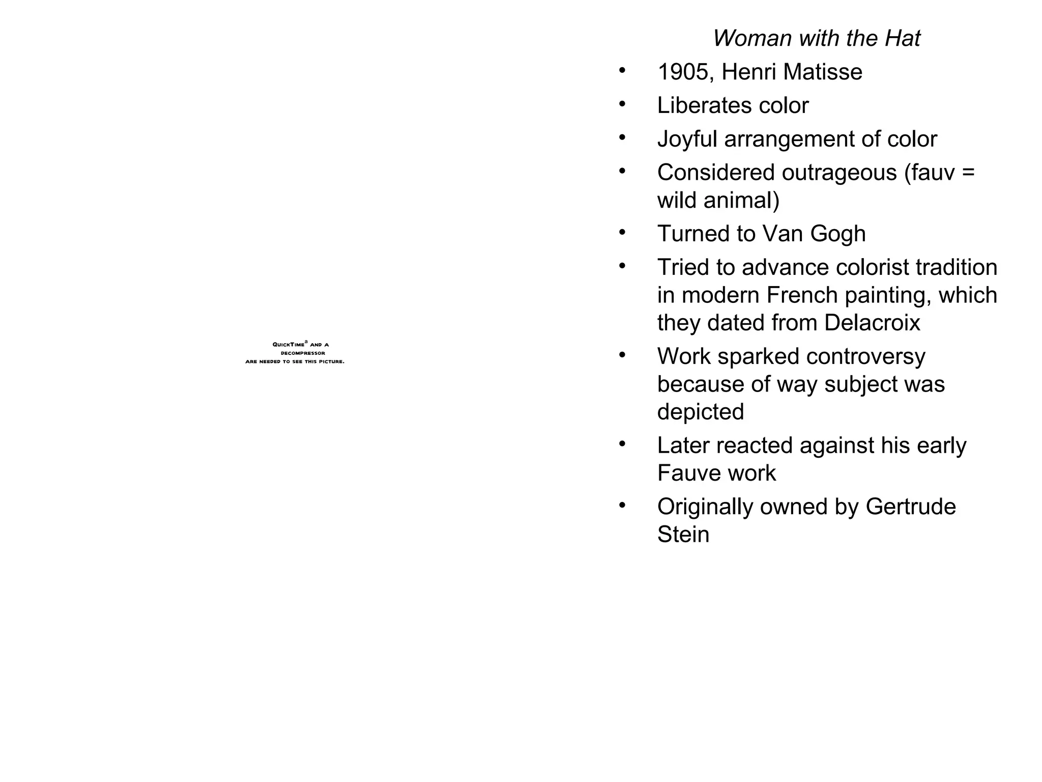 1) It describes Fauvist works like Matisse's Woman with the Hat that used bright, unnatural colors and Kirchner's Street, Berlin that depicted the city as lonely.
