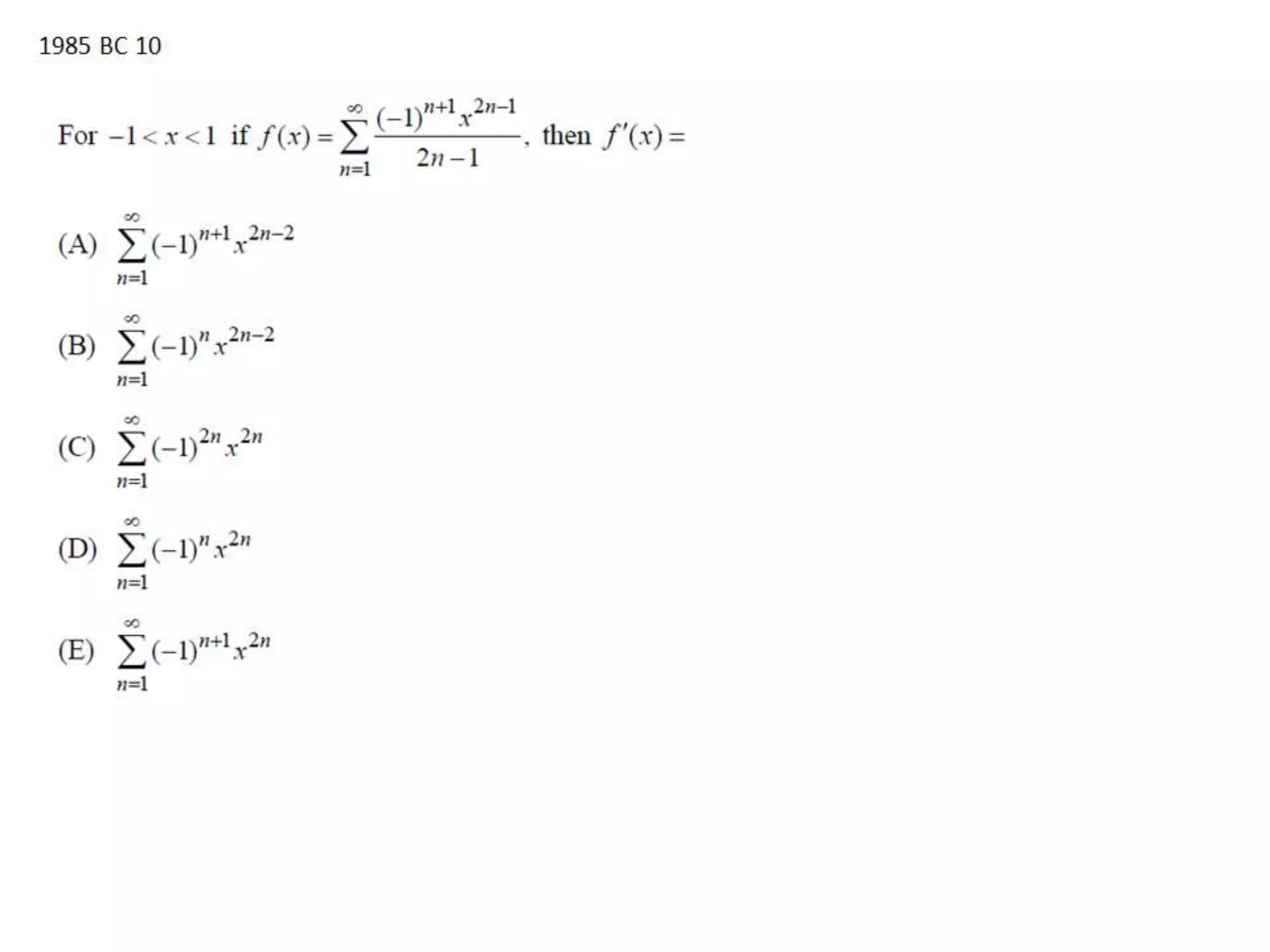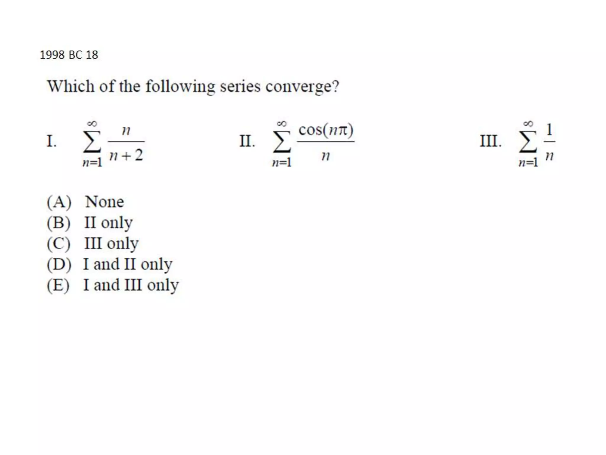 This document provides multiple choice questions related to infinite series from an AP Calculus BC exam. It contains a series of videos that explore different concepts in infinite series through interactive multiple choice questions and explanations. The videos cover a range of topics on infinite series for calculus students to review.