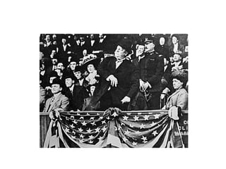 Theodore Roosevelt served as President from 1901-1909 and pursued an ambitious agenda of reform and regulation known as the "Square Deal." Some key aspects of his domestic policy included trust-busting like dissolving J.P. Morgan's Northern Securities Company, mediating labor disputes, and passing food and drug regulations. Roosevelt also championed conservation efforts and established 150 national forests. In foreign policy, he sent the Great White Fleet around the world and intervened in Latin America to promote political stability, including encouraging Panama's independence from Colombia to build the Panama Canal.