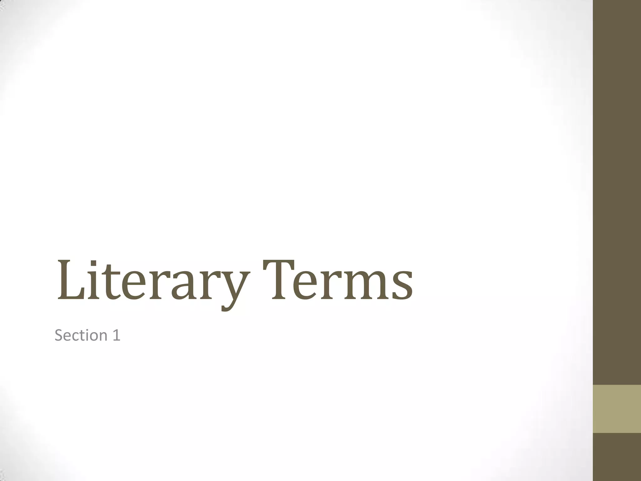 This document defines and provides brief explanations of various literary terms used to analyze and discuss works of literature. It includes terms like allusion, which is a reference to other works; antagonist, a character who opposes the protagonist; and archetype, a familiar character, situation or symbol found across cultures. The document also defines terms such as analogy, anecdote, antithesis, and apotheosis. It provides concise explanations of these common literary concepts and devices.
