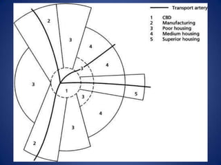 1) Urban geography focuses on how cities function internally and are influenced externally. It studies city systems and internal city structures.