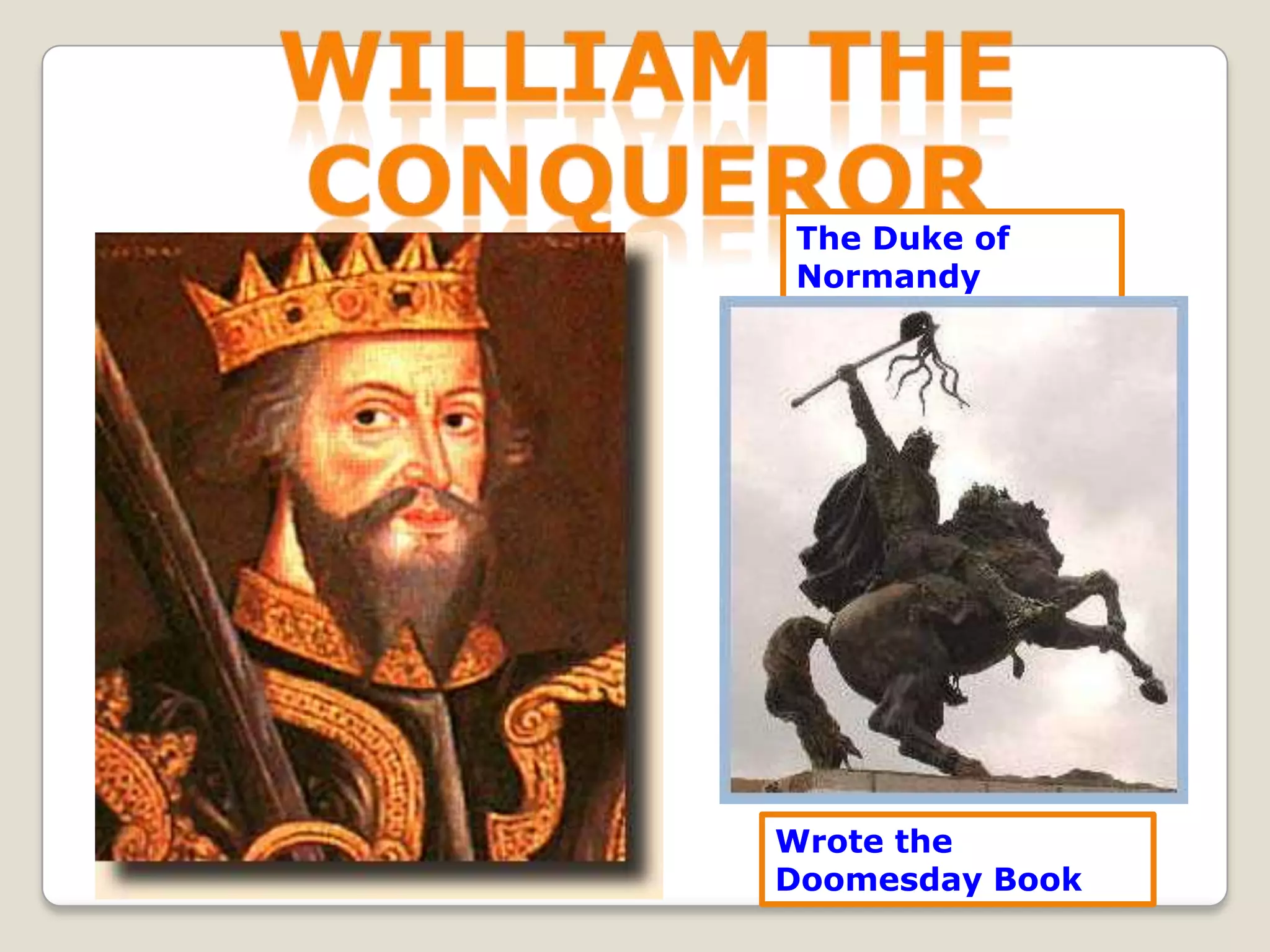 The document summarizes important events and people in English and French history from the Norman Conquest in 1066 through the Hundred Years War. It mentions William the Conqueror bringing feudalism to England, Henry II and Eleanor of Aquitaine, Thomas Becket, King John signing the Magna Carta, Simon de Montfort establishing the first directly elected parliament, the development of representative government in France, and Joan of Arc leading the French to victory during the Hundred Years War between England and France from 1337 to 1453.
