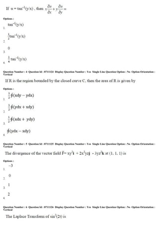 This document previews an aerospace engineering question paper that will take place on May 11th 2017 during the first shift. The question paper contains 120 questions with identifying information like question number, question ID, and whether the question number will be displayed. Each question is formatted vertically with options but no details are provided about the actual question topics or options.