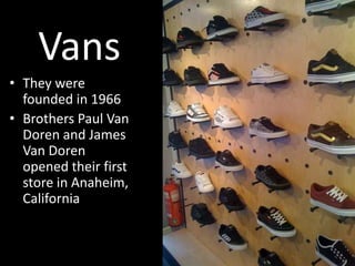 The document compares the popularity of Vans and Converse shoes, highlighting their founding years and key details. A chi-square test was conducted to analyze the independence of gender and shoe preference, resulting in a p-value of 0.05344, indicating no significant difference. Conclusions suggest that gender and shoe preference are independent, but acknowledge that Vans offer a greater variety in styles and that Converse has a longer history.