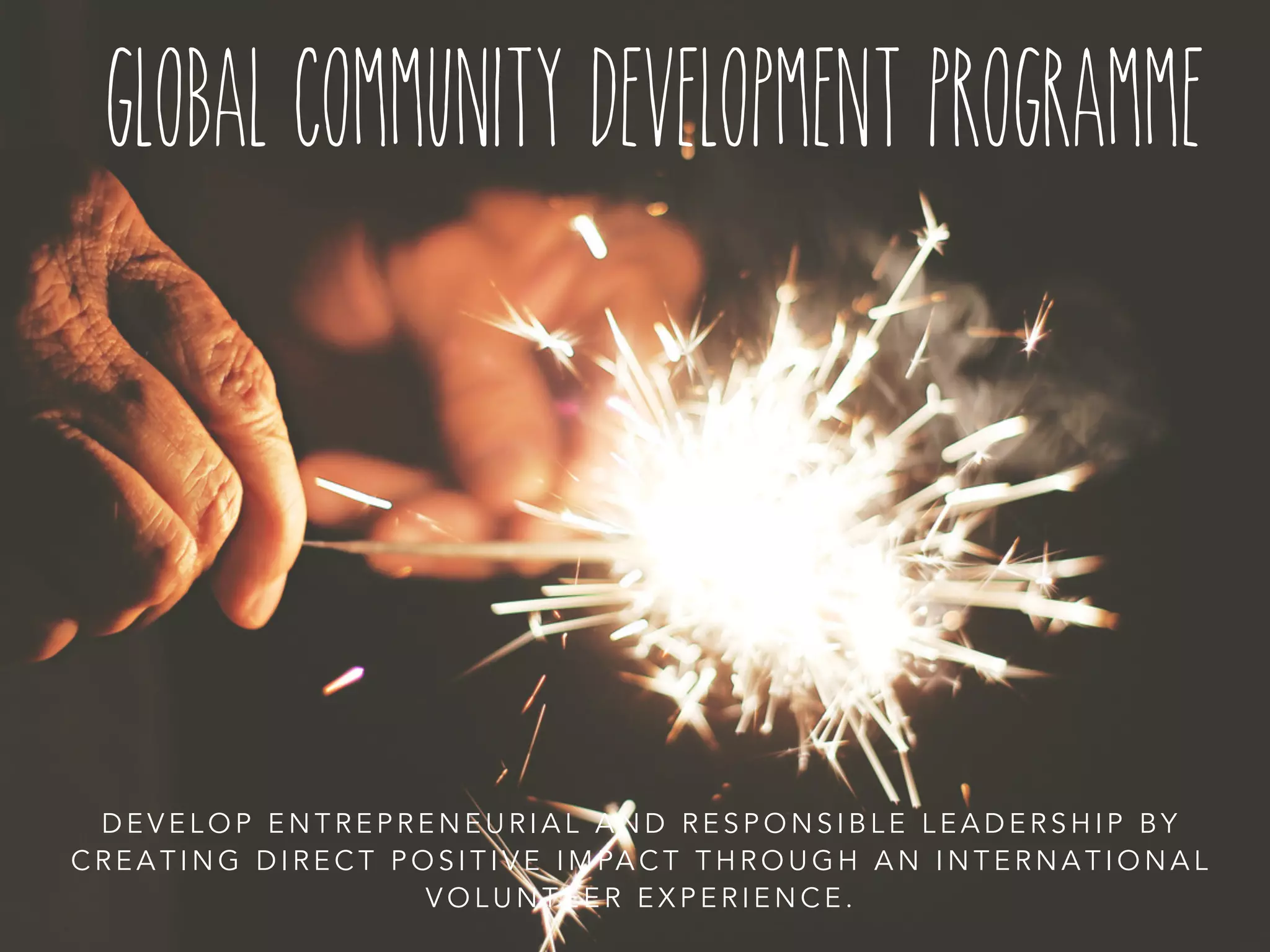 1. The document discusses a global community development programme that aims to develop entrepreneurial and responsible leadership through international volunteer experiences.