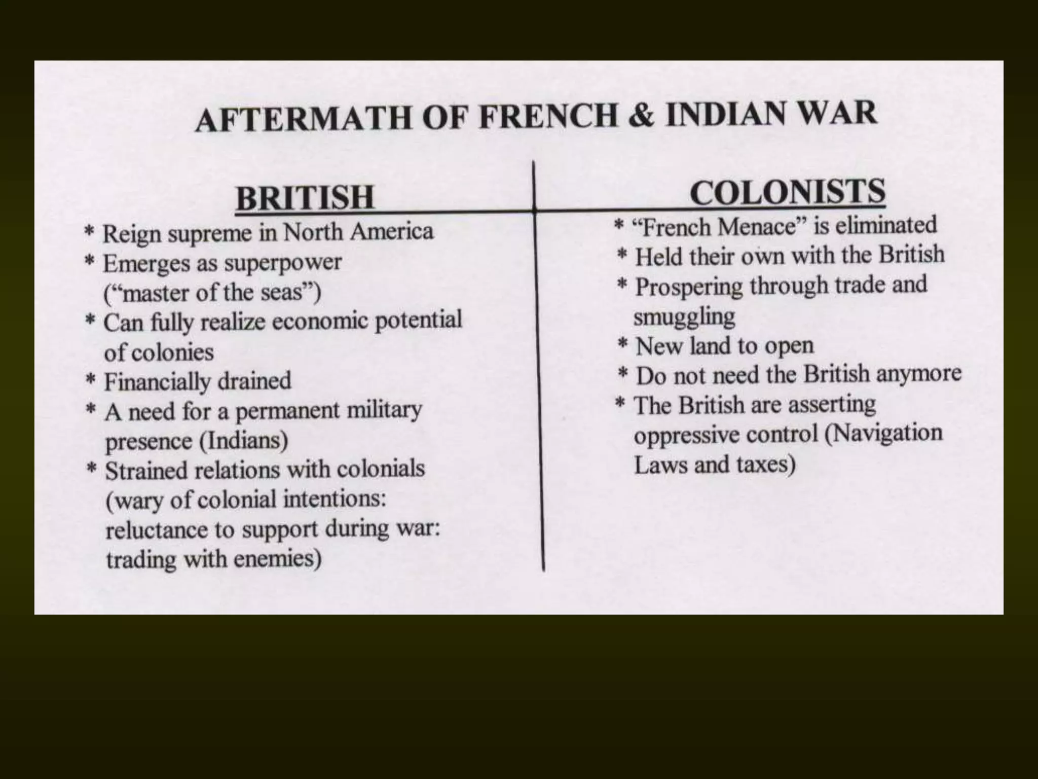 Victory in the Seven Years' War left Britain with a large empire in North America but also a large debt, leading the British government to try to shift some of the financial burden to the colonies through new taxes like the Stamp Act and Townshend Acts. This exacerbated tensions between the colonies and Britain by reinforcing American political identity and exposing irreconcilable differences over political principles of taxation and representation, laying the groundwork for the American Revolution.