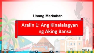 Ang dokumento ay tungkol sa Yunit 1 ng kurikulum na tumatalakay sa pinagmulan ng lahing Pilipino at ang kinalalagyan ng Pilipinas. Kasama dito ang mga teorya ng pinagmulan ng lahi, mga kasanayan sa heograpiya, at ang pagtukoy ng absolute at relatibong lokasyon ng bansa. Nagtatampok din ito ng mga gawain at tanong upang suriin ang pagkaunawa ng mga estudyante sa mga konsepto ng heograpiya.