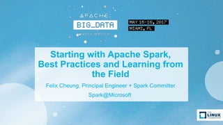 Starting with Apache Spark, Best Practices and Learning from the Field discusses optimizing Spark performance. It recommends using Parquet format for storage, avoiding UDFs, caching frequently used data, and checkpointing for streaming jobs. Predicate pushdown and broadcast joins can improve query performance. Structured streaming extends DataFrames to streams, enabling exactly-once processing with checkpointing.