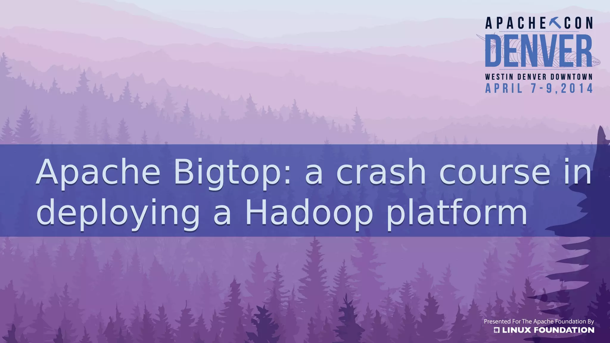 Apache Bigtop simplifies the deployment of Hadoop platforms by providing a streamlined stack that allows users to build, deploy, and configure their Hadoop ecosystems efficiently. The document discusses various case studies and lessons learned from using Bigtop in real-world scenarios, highlighting its capabilities and the growth of the associated ecosystem. Future developments focus on enhancing deployment processes, improving testing management, and increasing community engagement.