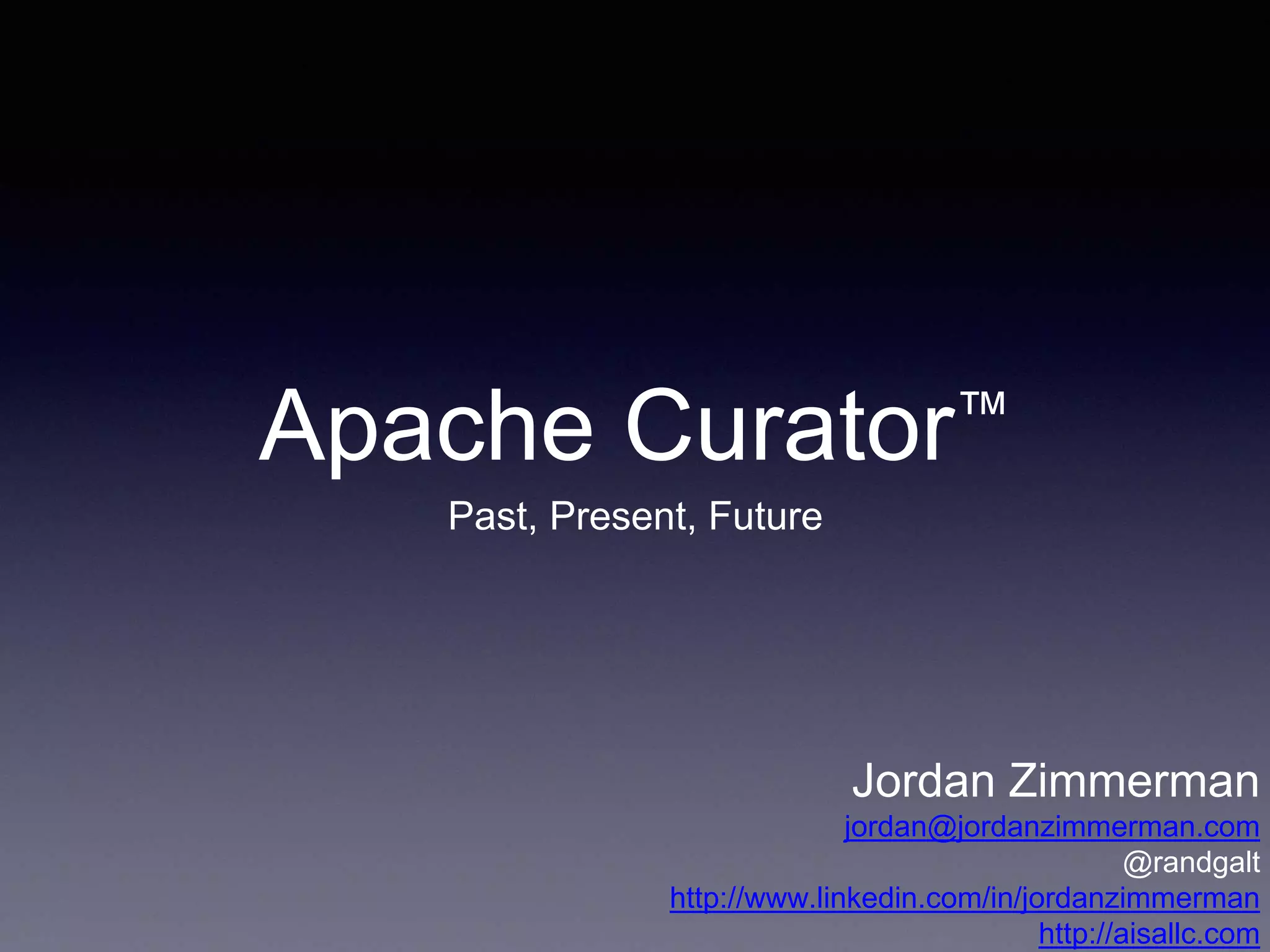 The document outlines the history, current state, and future of Apache Curator, an open-source framework originally developed at Netflix and later moved to Apache. It details significant milestones, notable contributors, and widely adopted use cases, as well as new features in the latest release, Apache Curator 2.7.0. The document emphasizes the project's ongoing evolution and community involvement, urging feedback for future developments.