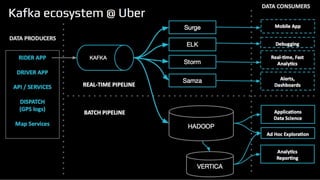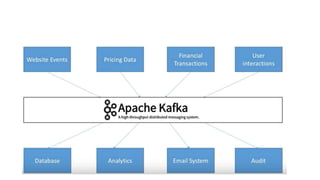 This document provides an introduction to Apache Kafka, an open-source distributed event streaming platform. It discusses Kafka's history as a project originally developed by LinkedIn, its use cases like messaging, activity tracking and stream processing. It describes key Kafka concepts like topics, partitions, offsets, replicas, brokers and producers/consumers. It also gives examples of how companies like Netflix, Uber and LinkedIn use Kafka in their applications and provides a comparison to Apache Spark.