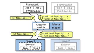 The document introduces Apache Mesos, a resource management platform for the data center that enhances scalability, fault tolerance, and supports Docker containers. It covers key concepts such as resource types, frameworks like Marathon for service management, and constraints for optimizing application deployment. Additionally, it discusses future improvements for better stateful service support and provides insights on running Kafka on Mesos.