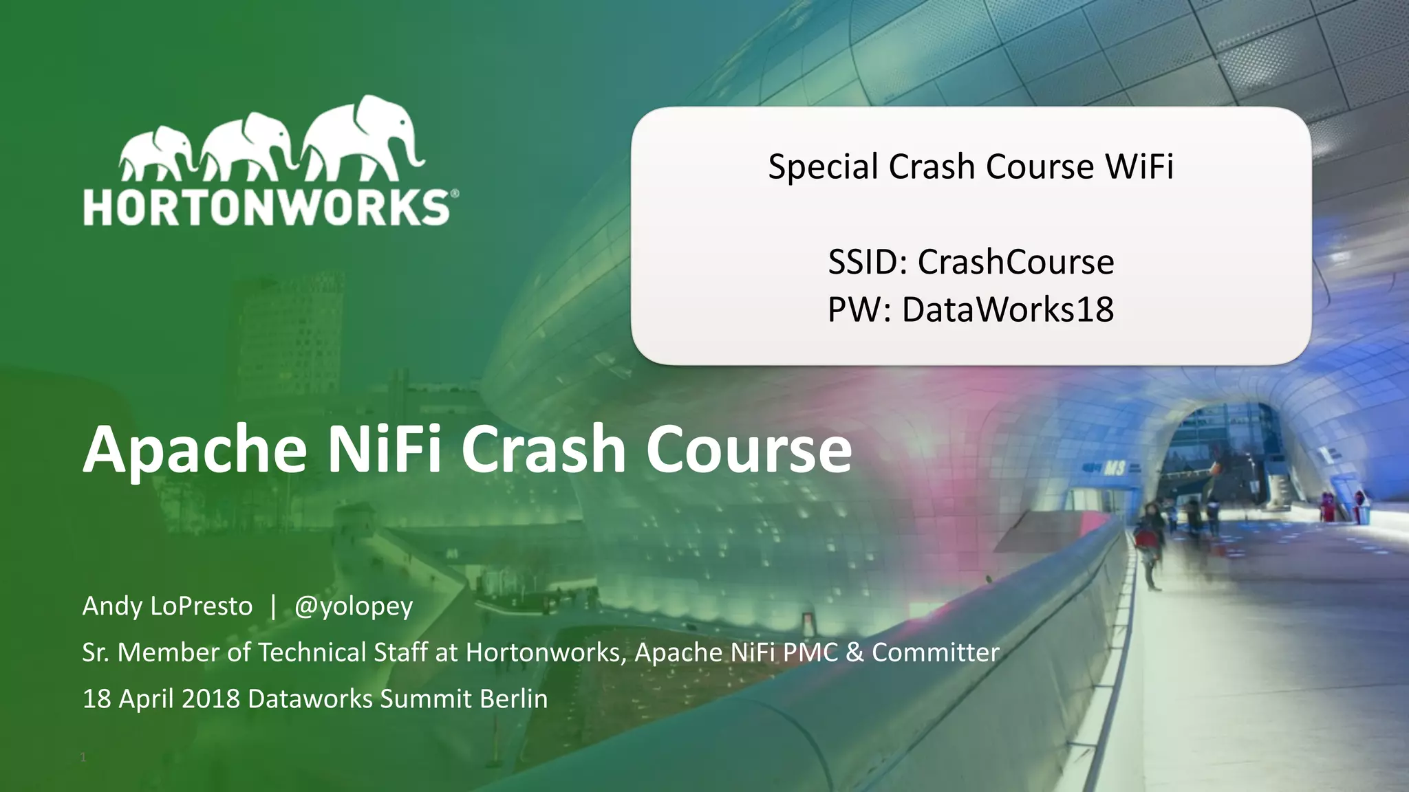 The document provides a crash course on Apache NiFi, detailing its role in dataflow management and the challenges associated with moving large datasets effectively. It explains key concepts of NiFi, such as flowfiles, processors, and architecture, while highlighting features like guaranteed delivery and data provenance. Additionally, it introduces the NiFi registry for better flow management and versioning, and encourages community engagement through collaboration and event participation.