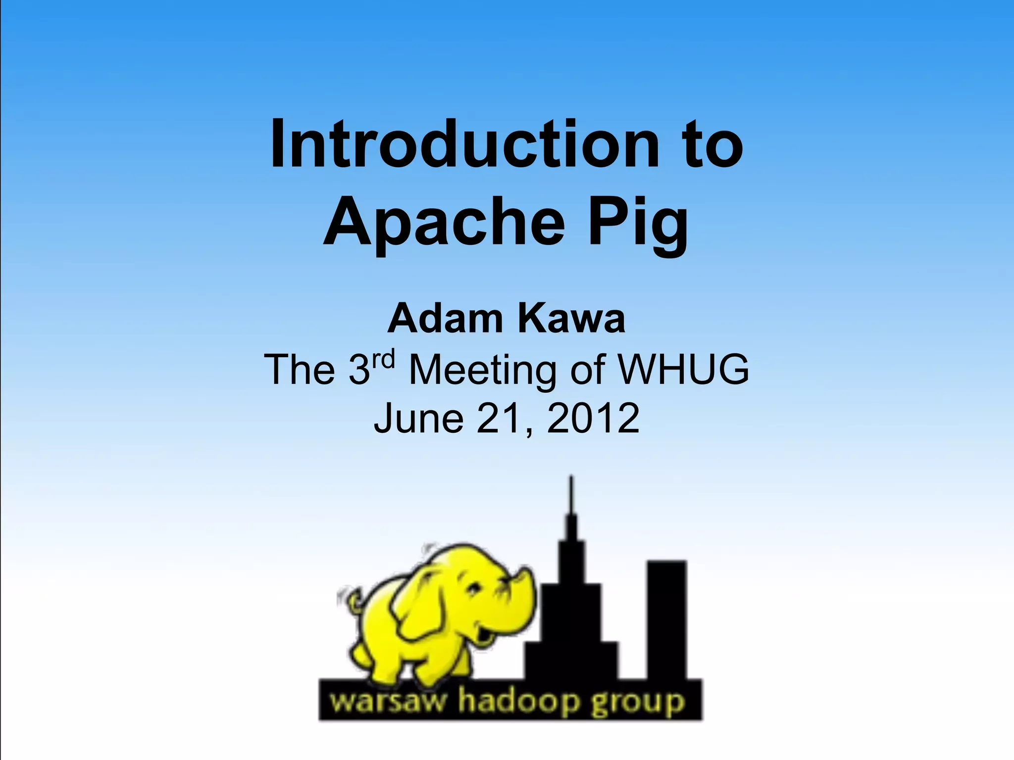 This document provides an introduction to Apache Pig including: