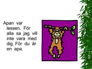 lessen. För alla sa jag vill inte vara med dig. För du är en apa .