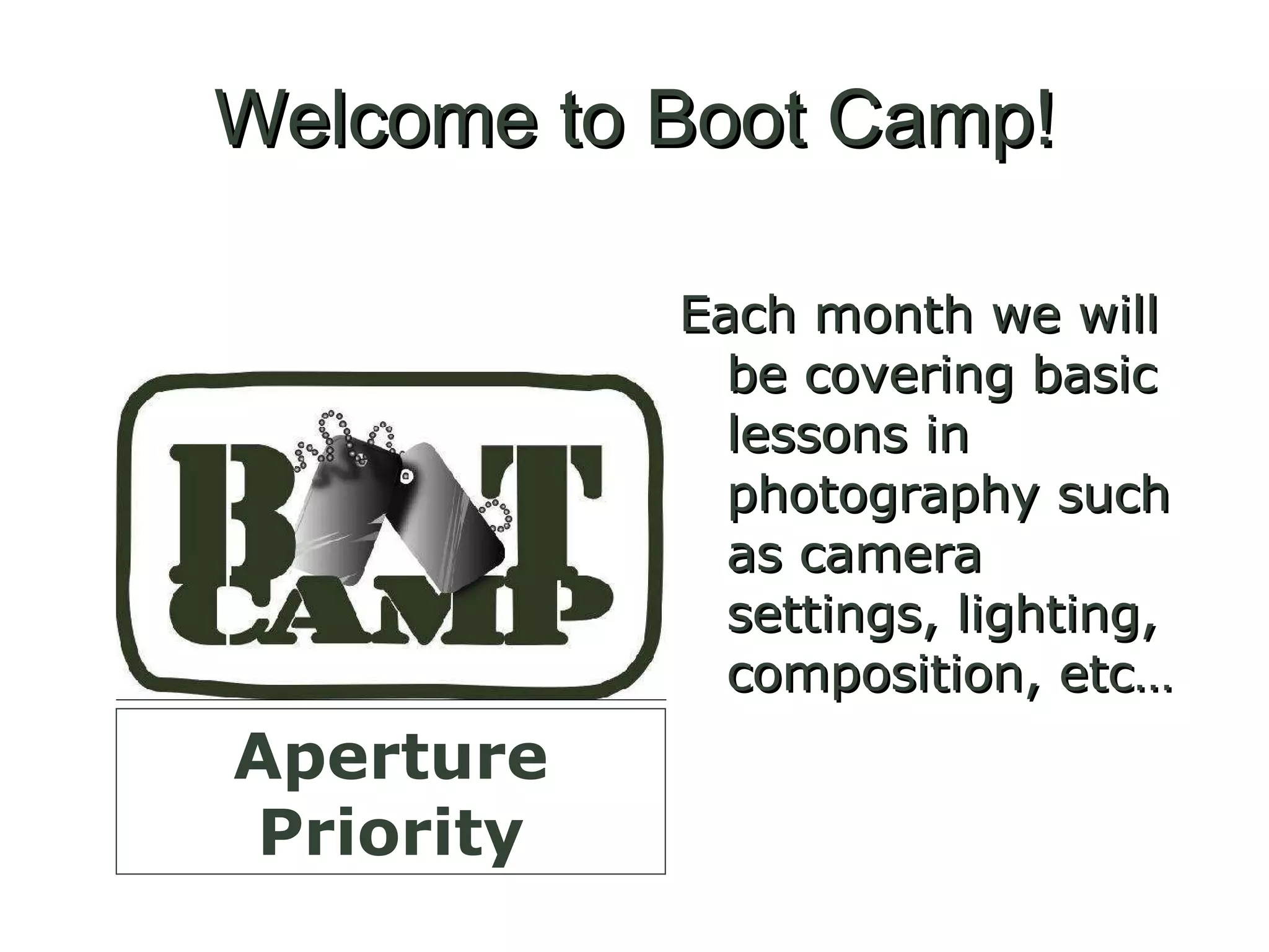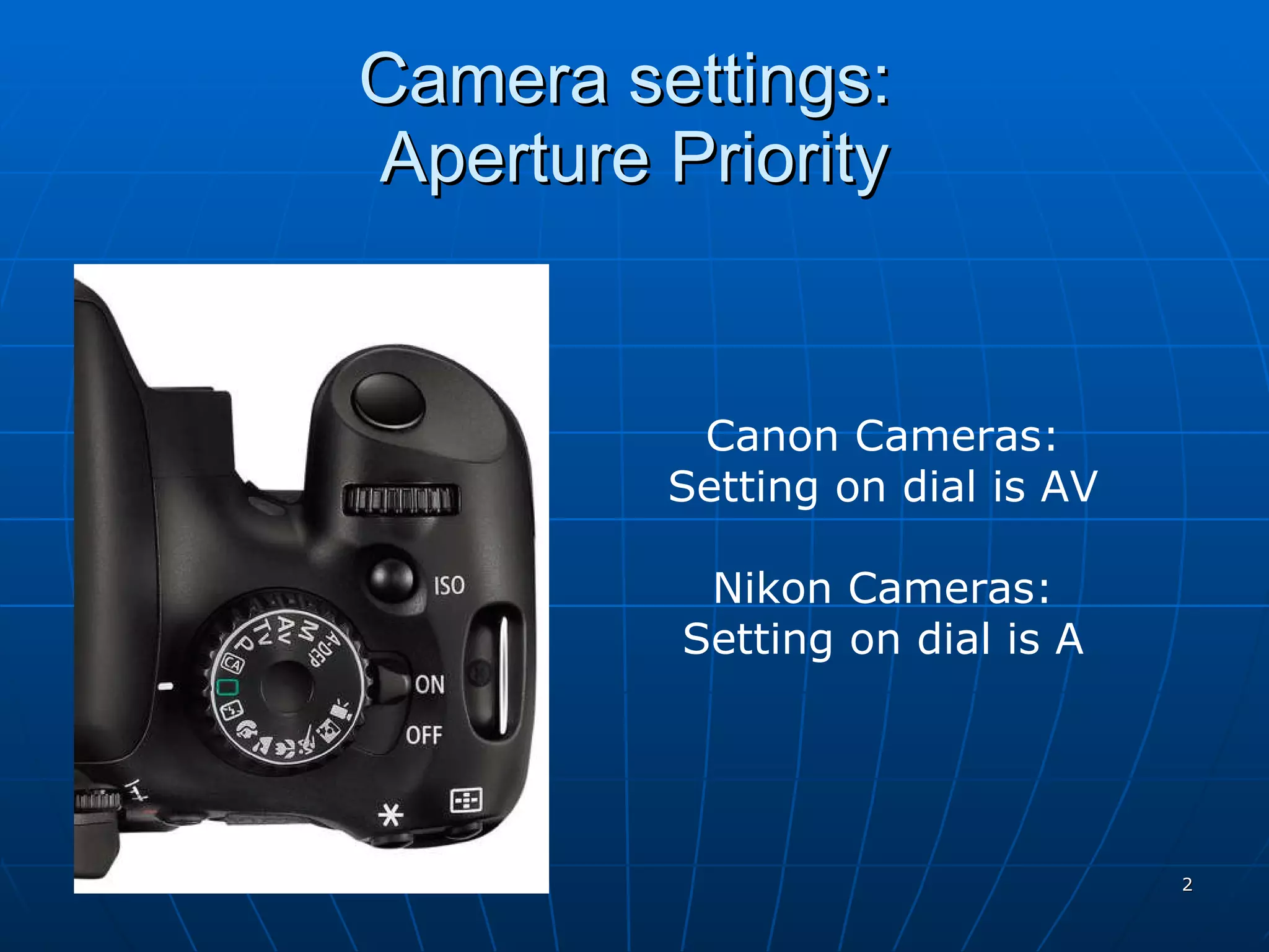 This document provides an introduction to aperture priority camera settings. It explains that aperture priority allows the photographer to set the f-stop or aperture opening size, while the camera selects the shutter speed based on the amount of light. A lower f-stop number means a larger aperture opening that allows more light in and a shallower depth of field, while a higher f-stop means a smaller opening, less light, and greater depth of field. It discusses the advantages and disadvantages of different f-stop settings in terms of light levels, shutter speeds, depth of field, and image focus.