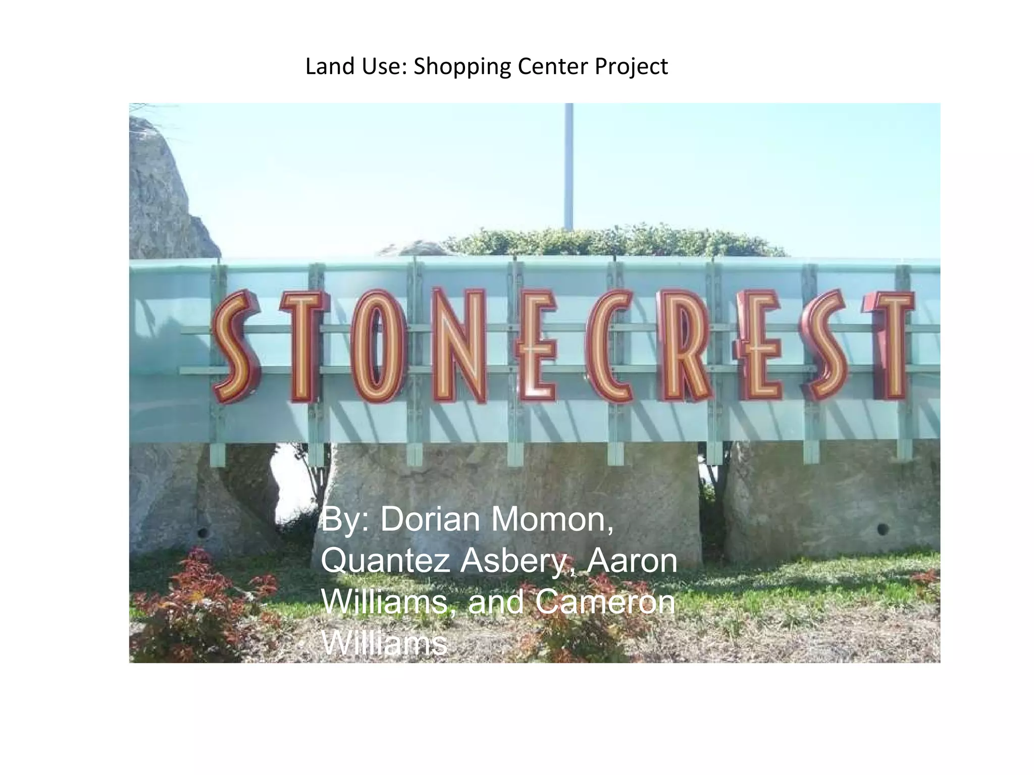The document describes a land use project for a shopping center. It includes measurements taken of trees using a clinometer to determine their heights. It also details the results of a survey conducted about the shopping center, finding that most respondents lived in the area prior to the mall's construction and have positive views of it, though traffic, crime, and accidents increased. Environmental impacts of the development including water runoff and habitat loss are discussed.